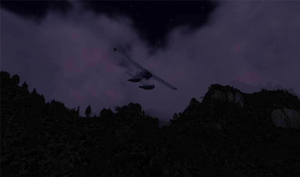 ummm... Betsy sure is sluggish. I am at the point of no return and it is still a wee bit too dark to do a steep turn in this valley. Now if I just tease the throttle full forward, perhaps I can squeeze over that saddle ahead - it's a wee bit further, but downhill all the way then.