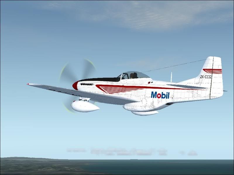 Actually, this repaint was based on several pictures of the real Mobil Mustang. I found out that the aircraft flew with both the coat of arms and, later on, with the logo I used for this repaint. I used this scheme at the request of the person I did the repaint for.
