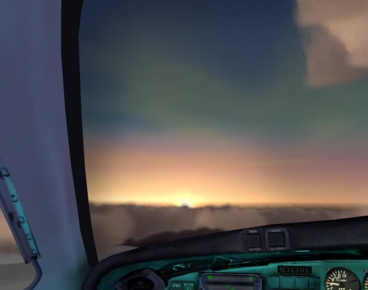 It lasted a good 6-7 minutes, I almost jumped outa my seat when I saw it I had only just broken through the fog and clouds and im greated by this ausome display ^_^