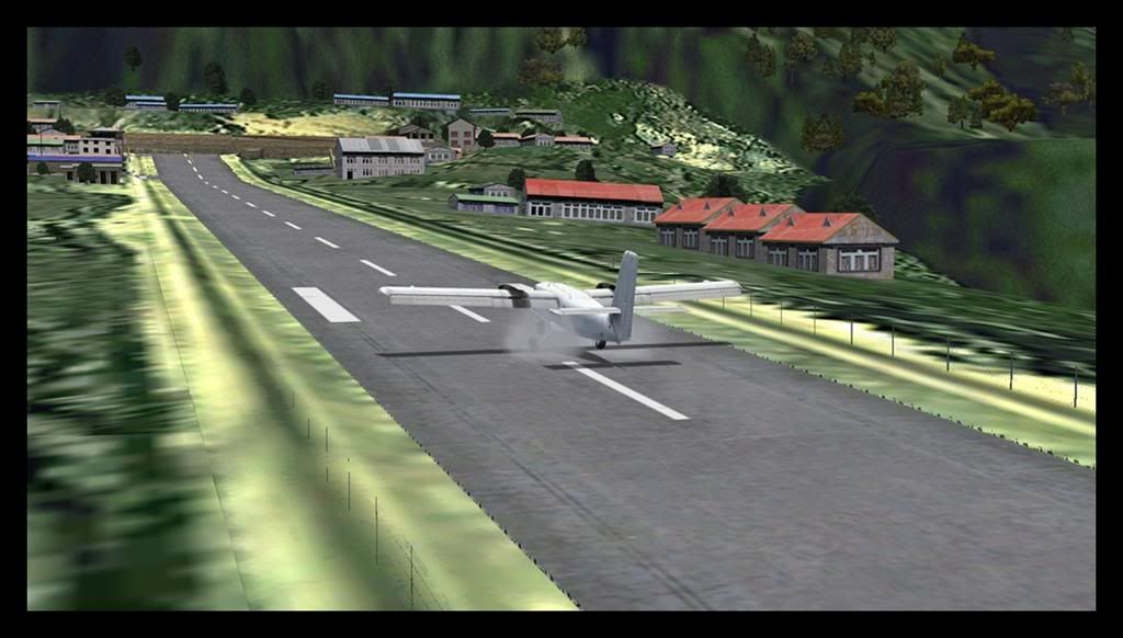 Did a hop from Kathmandu-Lukla, Nepal. Found it very challenging and all I can do is tip my hat at the real-life pilots who do this every day. Although my landing *looks* ok it was not - it resembled a Rafale slamming down on a carrier and in real life I think the gear would have gotten torn off