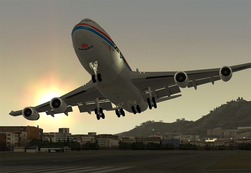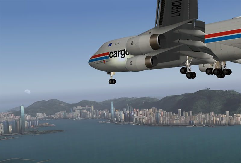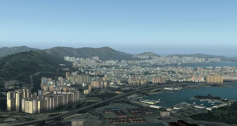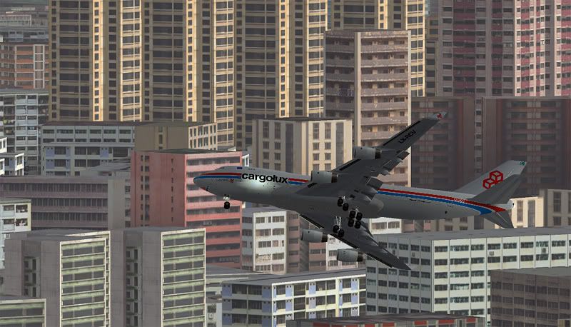 Ok, so its 5.30am and I've been up all night playing with my new favorite addon- FlyTampa's amazing rendition of Hong Kong City and Kai Tak airport. I told myself there was no point in getting it- I'd be leaving the country in a few days and my computer properly wouldn't run it that well, but the all the screenshots I kept seeing online were just so tempting that I couldn't resist... and it runs at an acceptable 9-14FPS on my system, not bad considering how dense the scenery is!