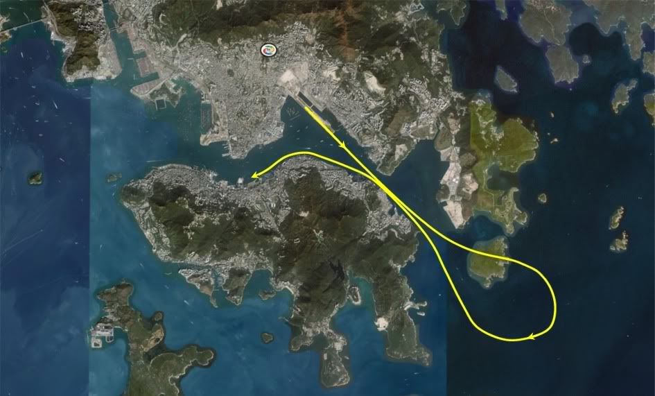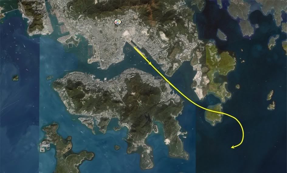 Then 135deg starboard back to Kowloon, straight at the checkerboard and grease in to Rwy 13.