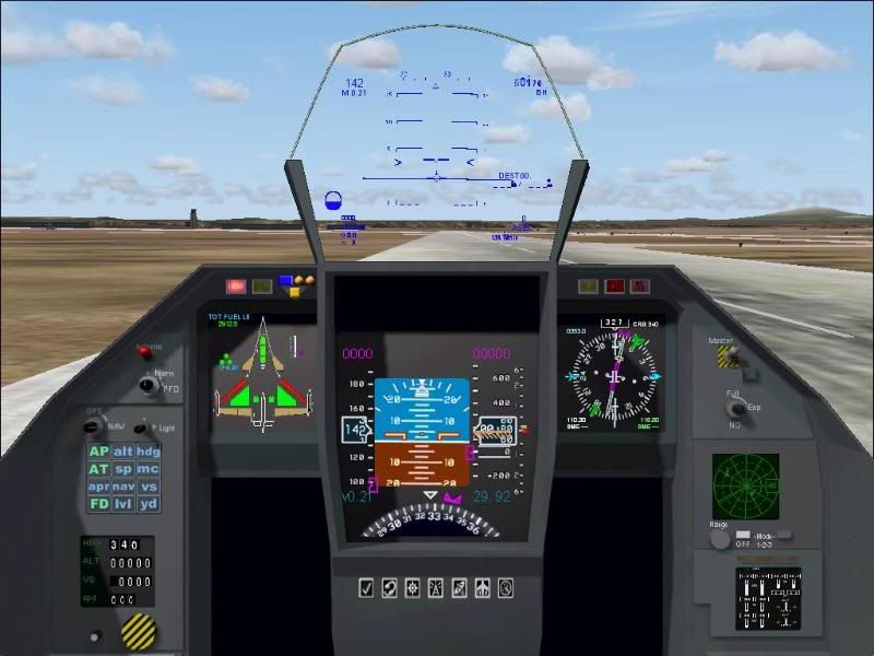 I found a HUD update on www.mirage4fs.com that more closely matches the Rafale's HUD, but the display resolution for it was off in the 2D cockpit, being all but completely unreadable. The only way I could use the thing "as-was" was in the virtual cockpit mode, where it's display resolution was readable. After some tweeking in the panel.cfg of the HUD's positioning and resolution/aspect ratio, I have it just about perfect. Mind you, I didn't have the benefit of a graphical panel editor, instead adjusting it's coordinates and resolution via lots of trial and error editing the panel.cfg