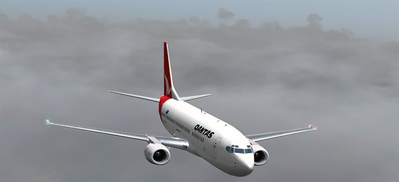 I really enjoy browsing through all these, but just for a change, I've decided to upload a few pics of my own, from a recent main-trunk QF flight I flew in one of Dan's fantastic Vistaliner's 733 repaints. The angles obviously focus more on the aircraft and ActiveSky textures (take note Charl!) than those ground, as reasoned in the above paragraph- so compared to most of the other Screenshot threads, these might appear a little mundane: